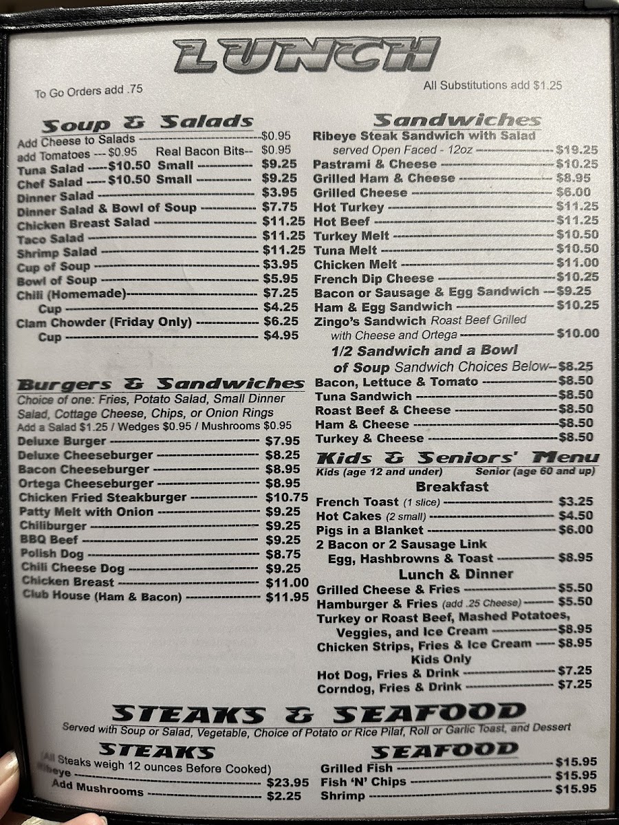 Welcome to Zingo's Cafe, a delightful culinary stop in Bakersfield, CA. This cozy cafe boasts a menu that captures the essence of home-cooked meals with an inviting atmosphere. Notable selections include delectable soups like navy bean and clam chowder, alongside refreshing salads such as the taco salad and shrimp salad. If you're a meat lover, don't miss out on their juicy ribeye steak, which receives rave reviews. Breakfast items, from French toast to the impressive chicken fried steak, are sure to please.